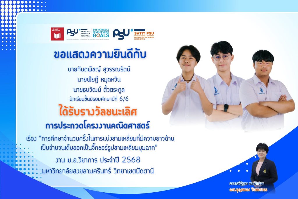 ขอแสดงความยินดีกับนักเรียนโครงการ วมว. ที่ได้รับรางวัลในงาน ม.อ.วิชาการ ประจำปี 2568