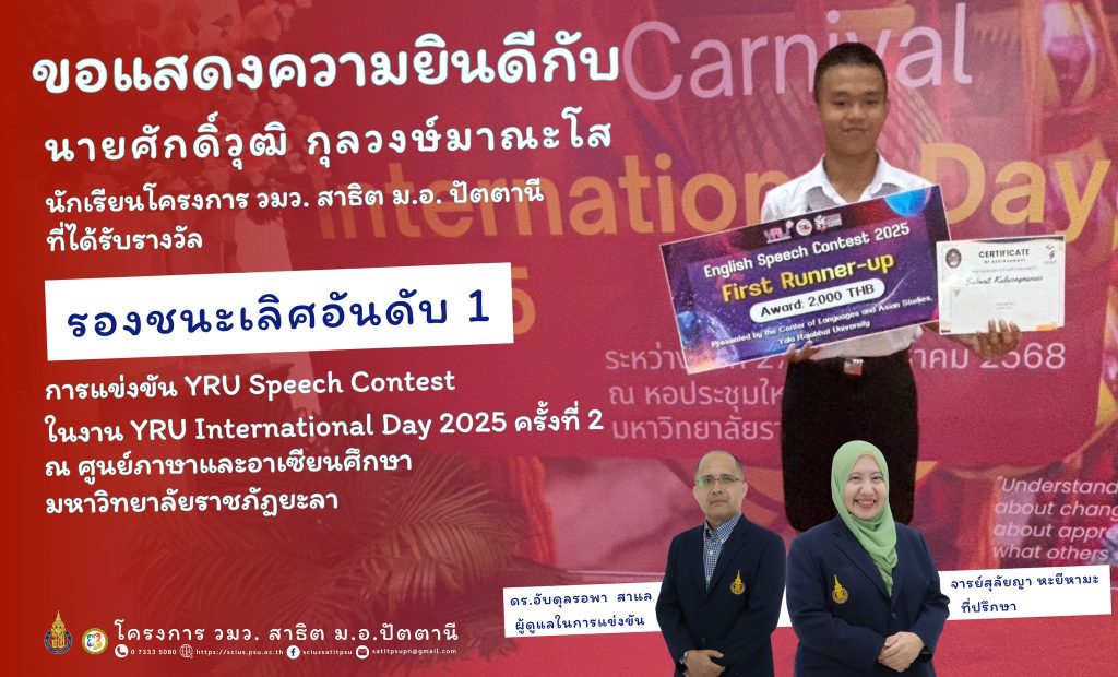 ที่ได้รับรางวัลจากการแข่งขัน YRU Speech Contest